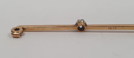 15ct gold and solitaire diamond bar brooch set single tiny diamond, approx. 0.02ct, 2g