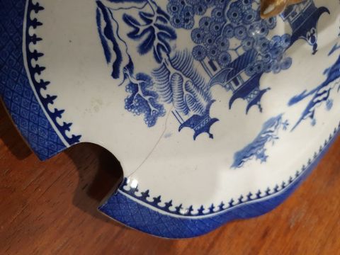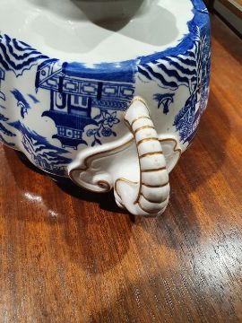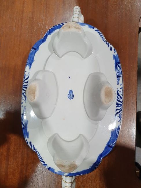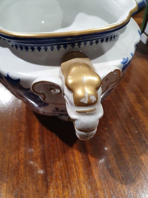 Worcester tureen with light surface scratches, wear to the gilt, small chip to one elephants ear, crack to the lid. General wear and tear. H. 25cm, L. 40cm, W. 21.5cm