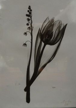 Two black and white photogram studies of tulips, stamped 'AGFA' to bottom right corner (2)