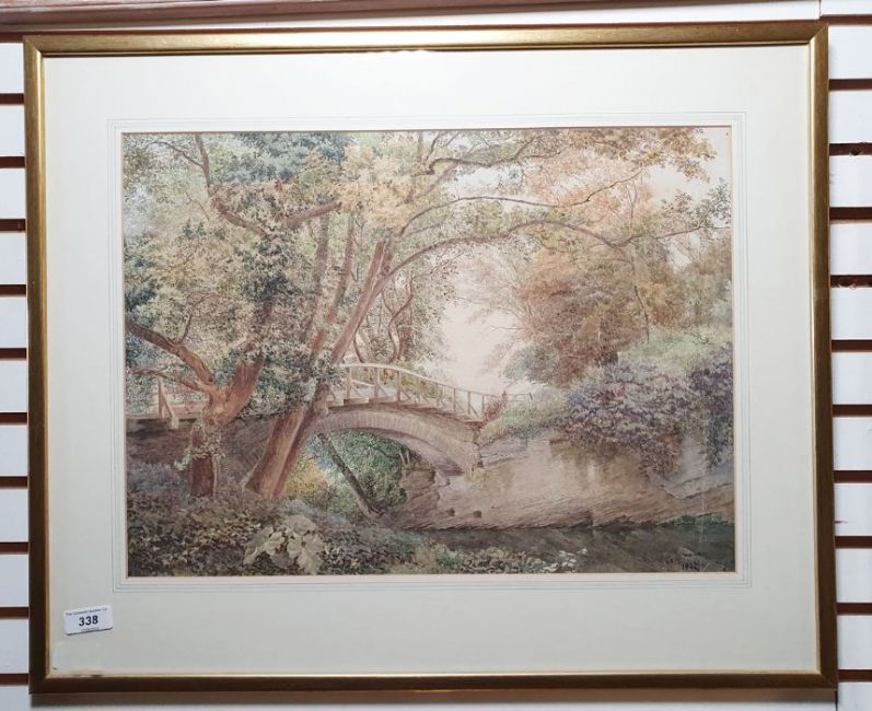 Alice E de Maine (19th century)WatercolourBridge over river, signed lower right and dated 1877, 33cm x 45.5cm
