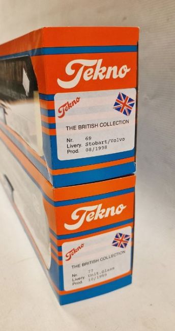 Tenko 1/50 scale diecast models to include 'The British Collection' #69 Stobart/Volvo Truck and #77 United Glass Truck both in original boxes (2)