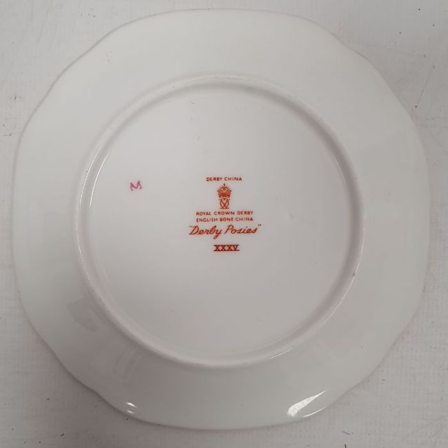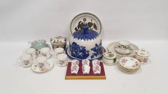 Boxed set of Royal Crown Derby demitasses, a Derby 'Posies' pattern part coffee service printed with flower sprays within gilt rims, the service comprising six coffee cups and saucers, a sugar bowl, cover and stand, a Staffordshire ironstone cheese bell and cover printed in blue with vignettes of roses, 20cm high and other items including Portmeirion 'Botanic Garden' pattern circular dish, a Quimper pottery preserve pot and cover