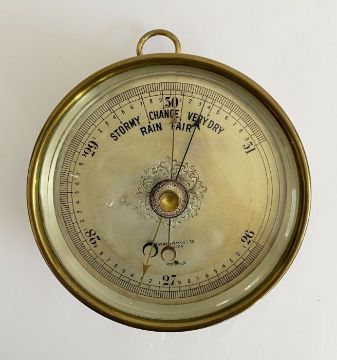 Early 20th century brass cased barometer by Short & Mason Ltd (London), with silvered dial and altitude adjustment knob, marked Pat C&T, 13.23 cm diam.