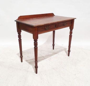 Edwardian pine side table, the rectangular top with moulded edge above two drawers, on turned supports, 74cm x 91cm x 48cm