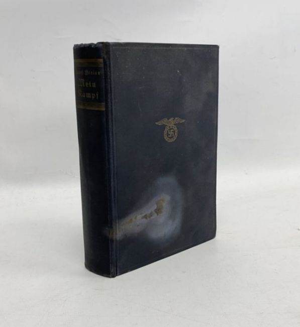 Hitler, Adolf  " Mein Kampf"  Berlin 1934, tissue guard to frontis, small tears on the tissue guard, front hinge cracked, black cloth, stained boards