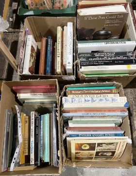 Ceramics - to include Miller, Philip and Bertaud, Michael "An Anthology of British Teapots",  " An Anthology of British Cups"  Walton, Peter " Creamware and other Pottery at Temple Newsam, Leeds " Hume I. "If these Pots could Talk",  Tilley, Frank " Teapots and Tea" , " Liverpool Printed Tiles", " English Enamel Boxes", " English Brown Stoneware 1670-1900"  and related volumes (4 boxes)