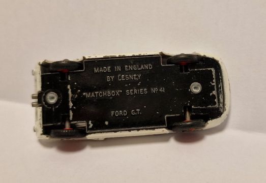 Matchbox Lesney unboxed diecast model Matchbox series no. 41 Ford GT with White Body, no.6 decal, red hubs and black tyres