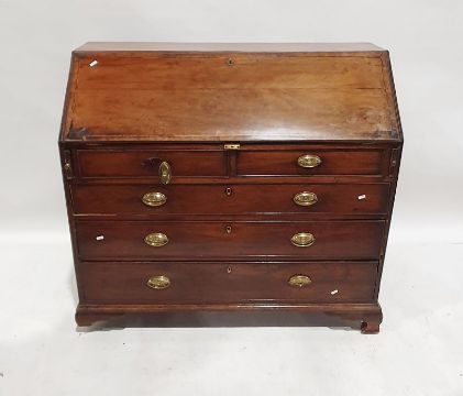 Georgian mahogany bureau with part fitted interior, two short over three long graduated drawers to ogee bracket feet, 107cm x 117cm x 52cm