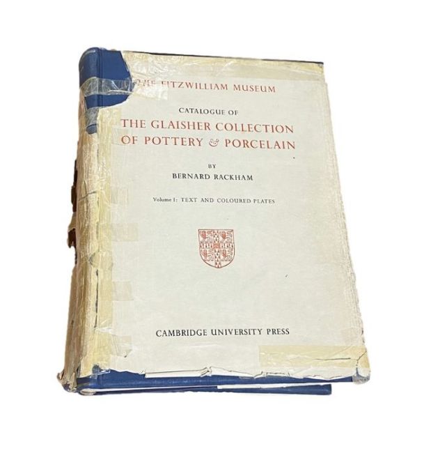 " Catalogue of the Glaisher Collection and Porcelain - the Fitzwilliam Museum" printed by the Cambridge University Press 1935, 2 vols, col plates with tissue guards, blue cloth gilt titles, both with d-j but with losses and chipped, the plates clean and bindings tight (2)