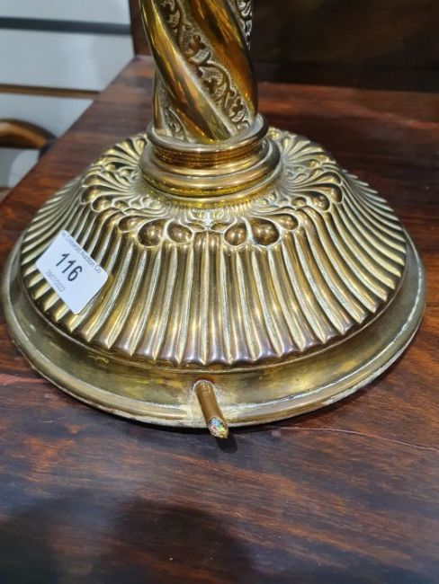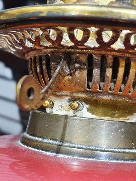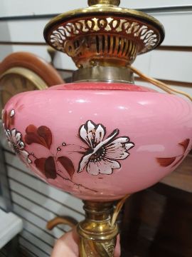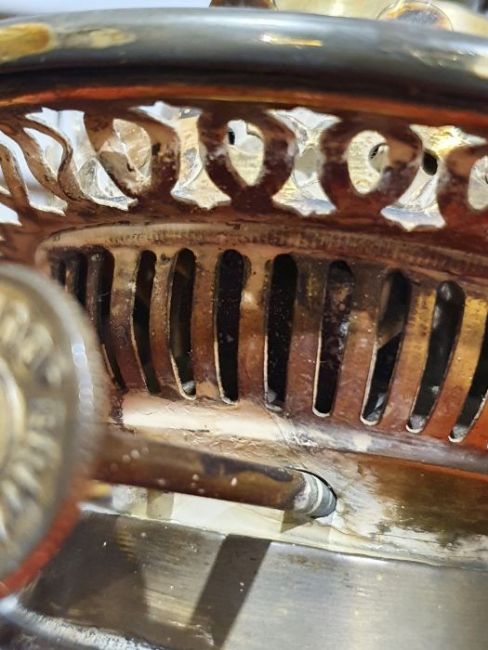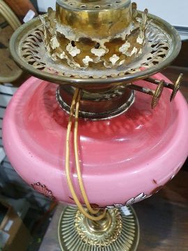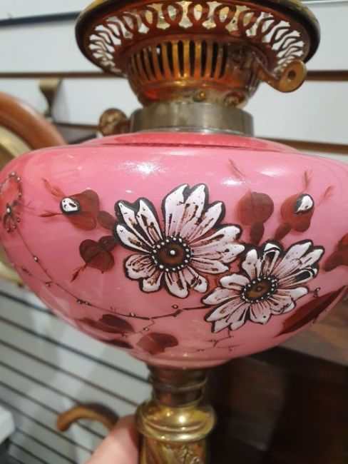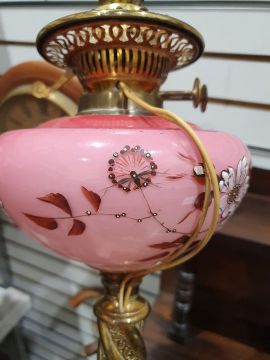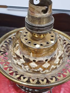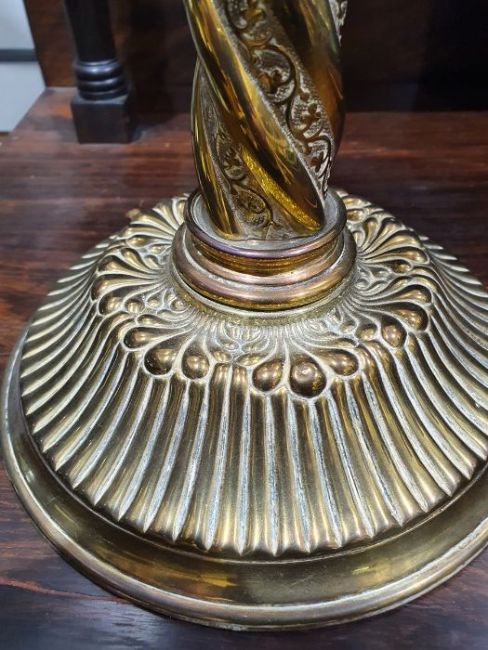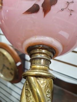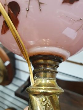 Some light surface scratches, marks, accretions and polish residue. A small chip and further nibbles to the base of the glass shade. General wear and tear