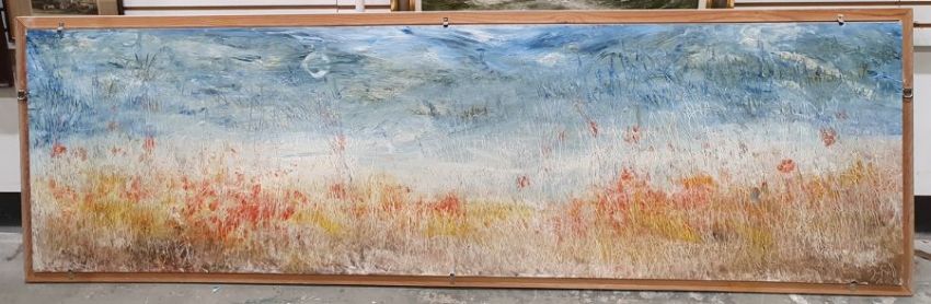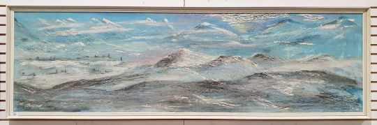 Jan Errill (20th century)Oil on boardSnowy mountainous landscape, summer meadow scene verso, signed and dated '78 lower right, 52.5cm x 181cm