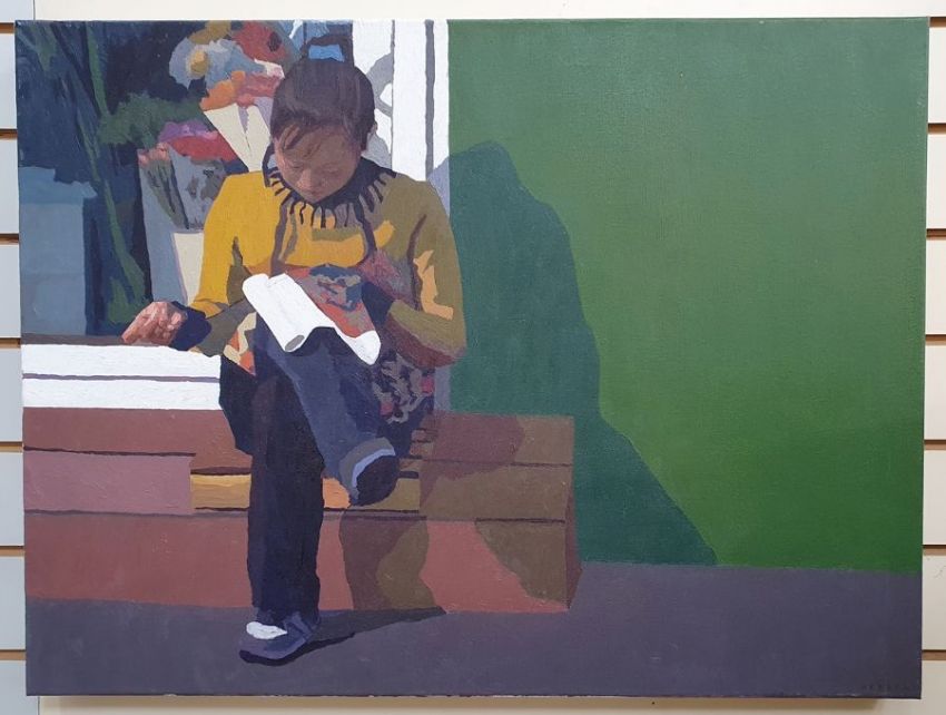 H R Bell (b.1976)Oil on canvas"Embroidered II", 2013, signed lower right, bears Francis Kyle Gallery London label verso and original sales receipt, 60cm x 80cm