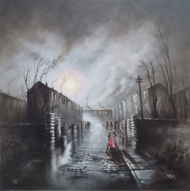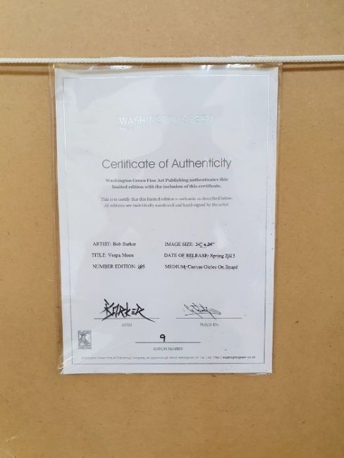 After Bob Barker Canvas giclee on board"Vespa Moon", signed lower right and numbered 9/195, bears Washington Green Fine Art Gallery COA verso