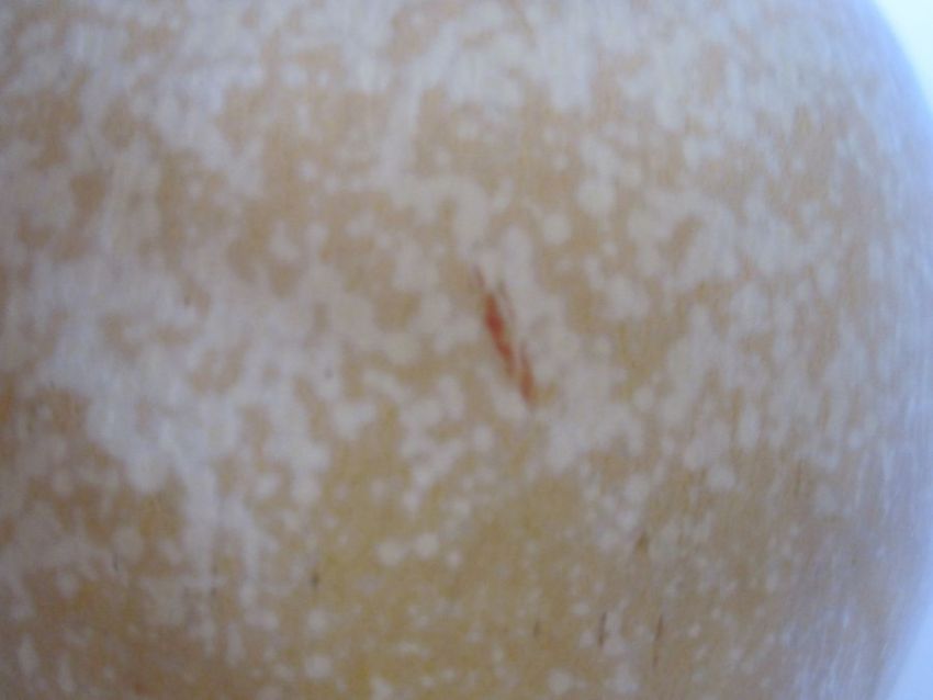 Appears to be in good overall condition; no visible cracks, chips or crazing. A red line and mark within glaze, as per additional images