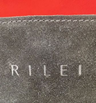 Rilei black suede evening bag with silver coloured hardware, and a small red shawl (2)