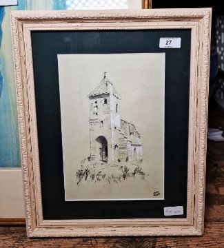 Adrien Dauzats (1804-1868)Pencil and gouacheStudy of a church heightened with white, Vente Dauzats stamp lower right, indistinctly titled and dated 1873 lower left, framed and glazed, 26.5cm x 18cm
