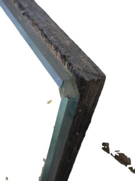 Art Deco style mirror - stepped, angular panel design in apricot and clear , 110 x99cms
