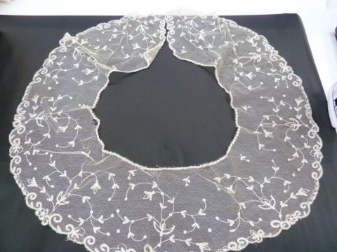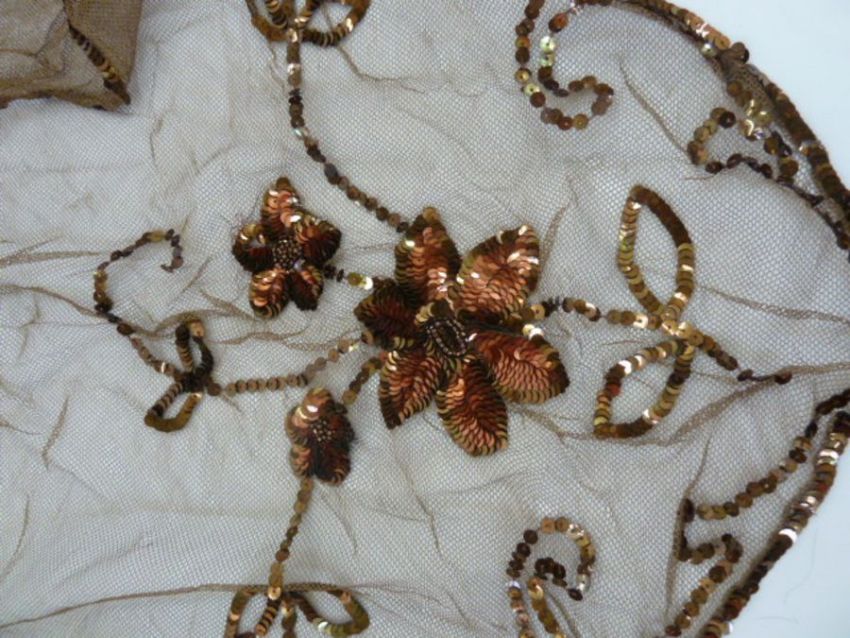 Antique lace collars and shawls, needlepoint, Nottingham lace, etc. x 5 and  a vintage brown net small shawl  embroidered with gold/brown sequins in the form of flowers (1 bag)