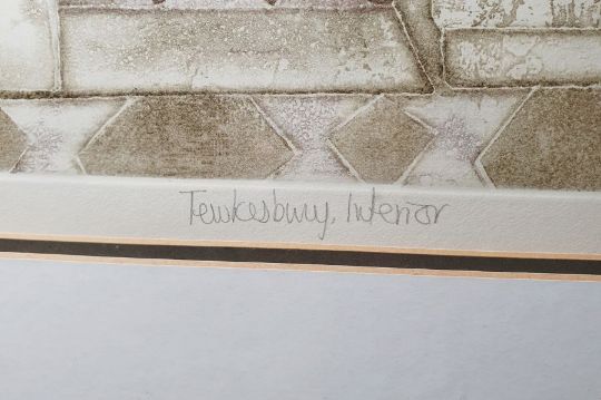After Valerie Thornton (1931-1991)Chromolithograph"Tewkesbury Interior", titled, signed and dated 86, numbered 33/70 within margin, framed and glazed, 57cm x 37cm