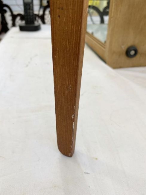 A little general wear to the feet. Small white paint mark to one stand as photographed. The odd mark and occasional slight lifting to the fiberglass material. See photographs.