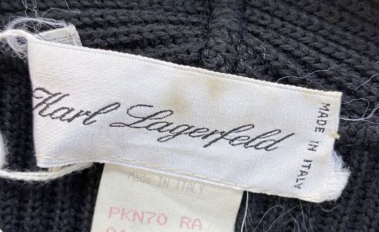 Karl Lagerfeld vintage black knitted jacket, double breasted,  front pockets, cuffs turned up, labelled size 42