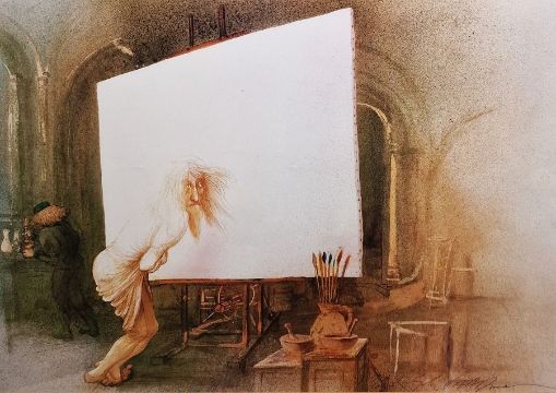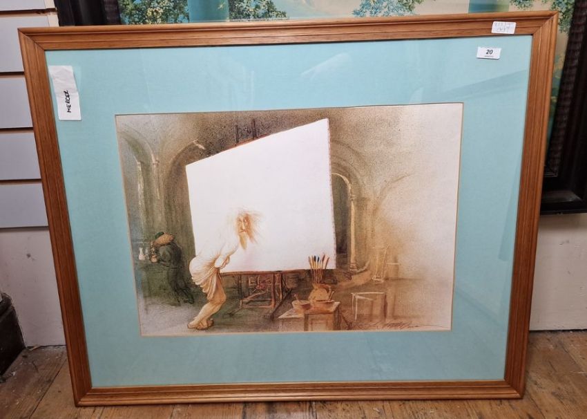 After Ralph Steadman Colour print"Leonardo", 1983, signed lower right, framed and glazed, 40.5cm x 56.5cm