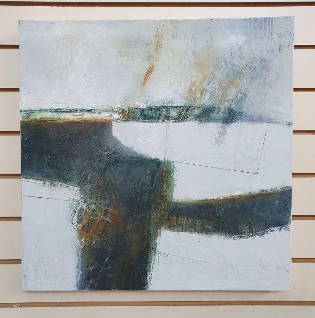 Peter Wray and Judy Collins (contemporary) Oil on canvas Abstract painting with geometric shapes, signed verso, 60cm x 60cm