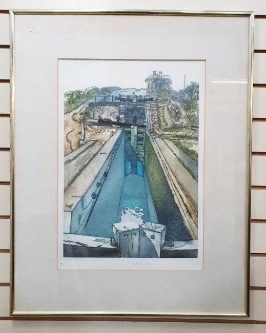 Gordon E Miles (b.1947) Etching and aquatint"Bratch Locks", titled, signed and numbered 46/150 within margin, framed and glazed, 60.5cm x 42cm, with original sales receipt from the Royal Academy Summer Exhibition 1984