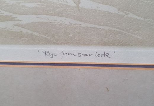 Gordon E Miles (b.1947) Etching and aquatint "Rye from Star Lock", titled, signed and dated 83, numbered 74/100 within margin, framed and glazed, 52.5cm x 41cm, with original Royal Academy Summer Exhibition 1983 sale receipt