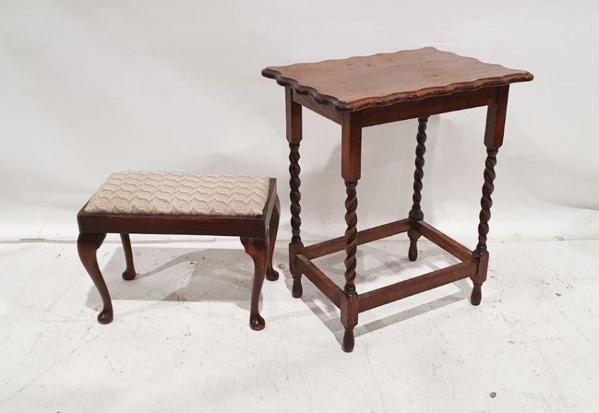 20th century oak occasional table with shaped top  on barley twist supports together with a stool (2)