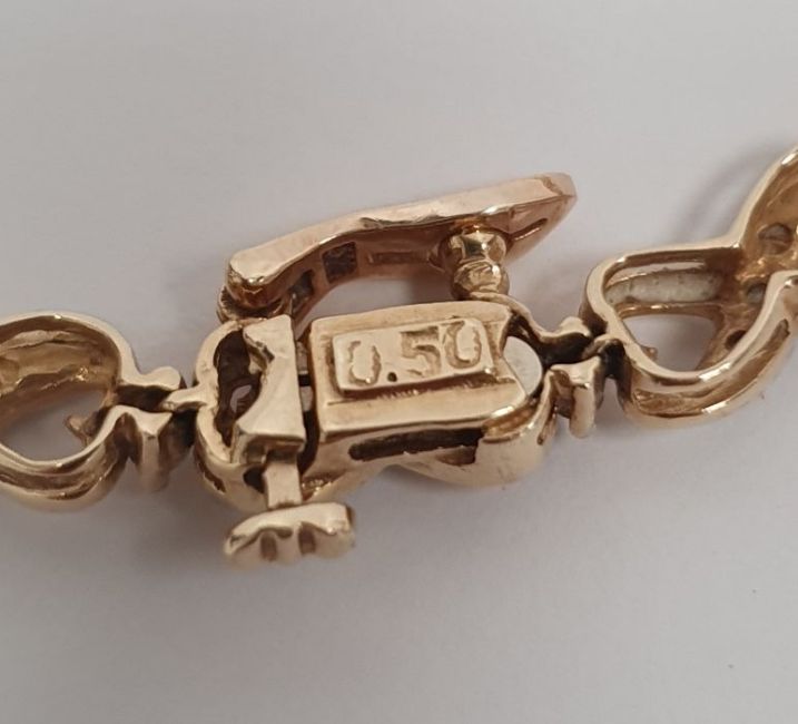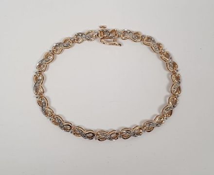 9ct gold bracelet set with tiny diamonds, marked on the clasp 0.50