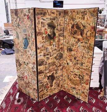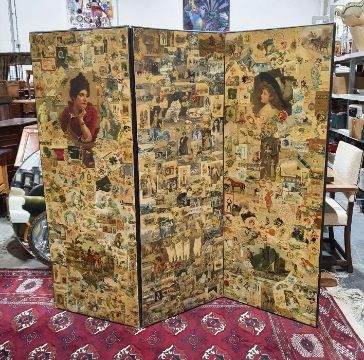Victorian three-fold draught screen with decoupage decoration
