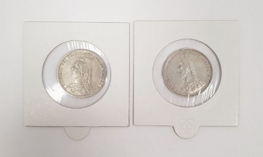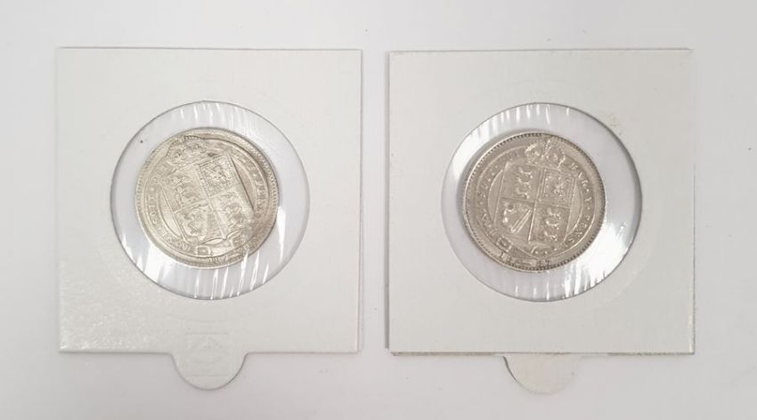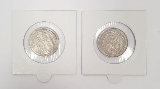 Queen Victoria silver shilling 1887 and 1890 (2)