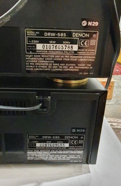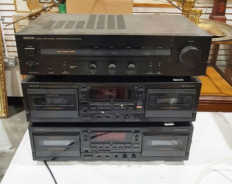 Denon PMA-320 integrated stereo amplifier, serial no.9022402136, a Denon DRW-585 double cassette deck, serial no.0107605788 and one further Denon DRW-585 double cassette deck, serial no.2087609655 (3)