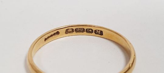22ct gold wedding ring, 1.9g approx.