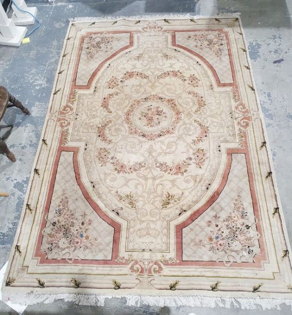 Large modern cream ground rug with central floral medallion with floral border  270cm x 184cm