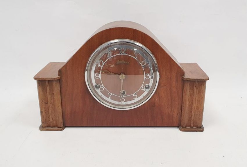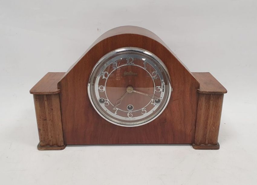 Early to mid 20th century oak cased mantel clock with pierced, chromed chapter ring, stamped 'British Made', Westminster chime movement, no.176289