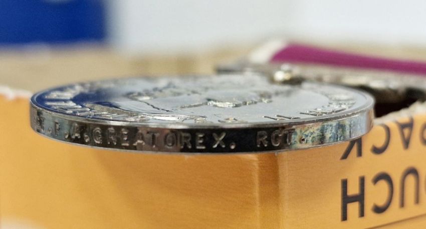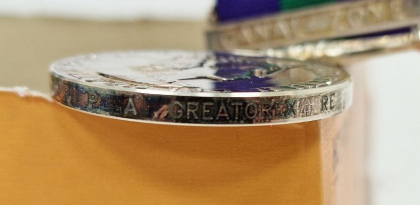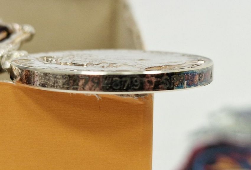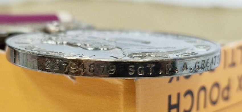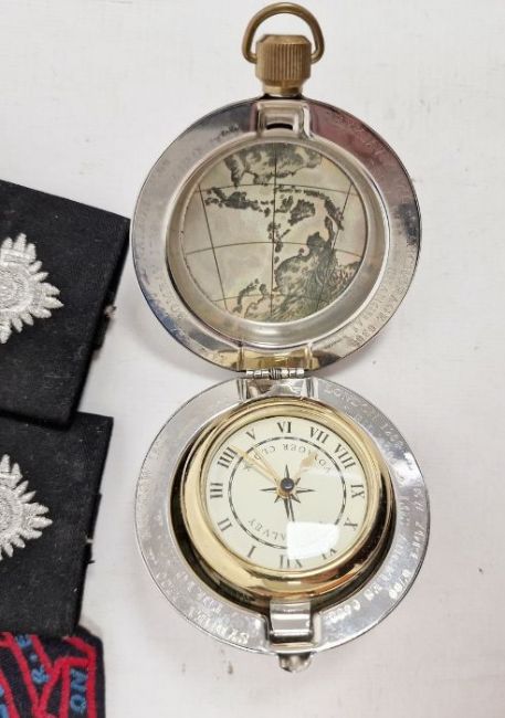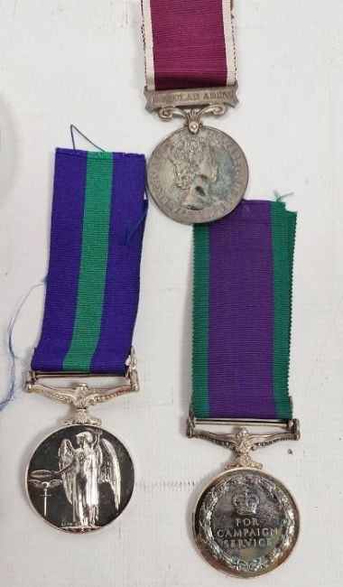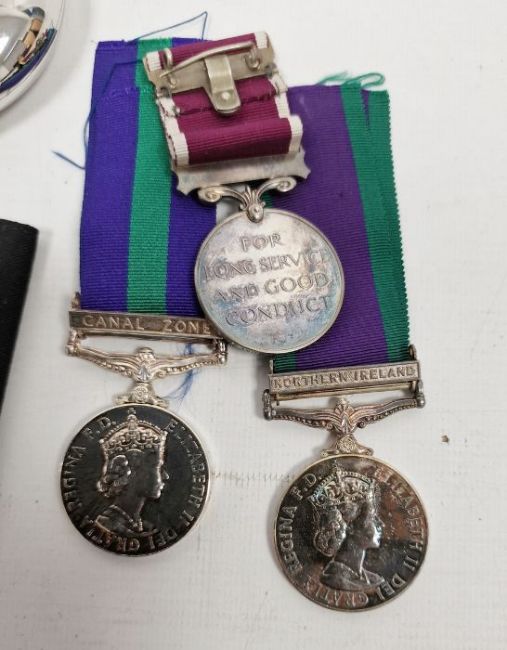 Regular service long service medal, a campaign service medal, a 1954-55 Egypt cloth badge, a compass and a belt marked 'England, a Breed Apart'