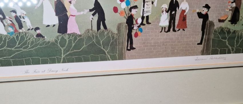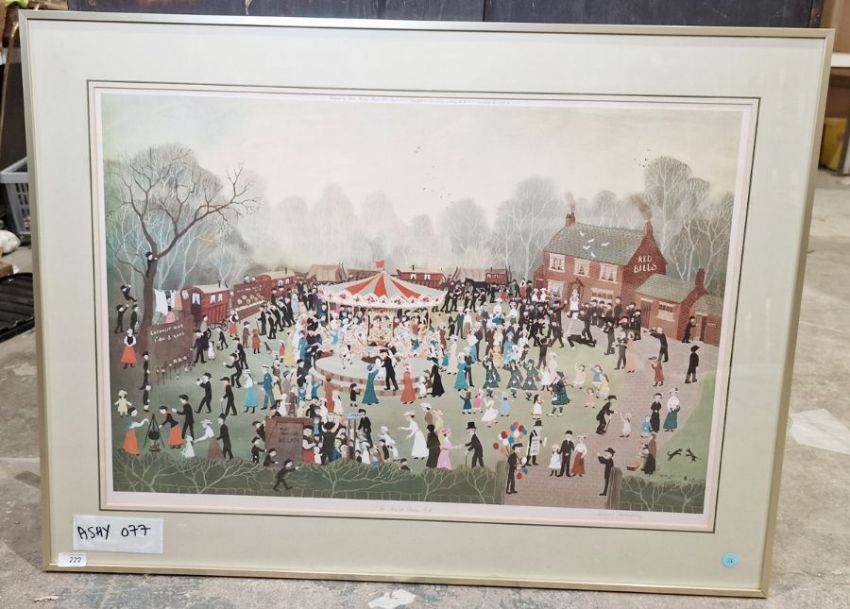 After Helen Bradley Colour print "The Fair at Daisy Nook", artist's blind studio stamp lower left, signed in pencil lower right, 50cm x 75cm