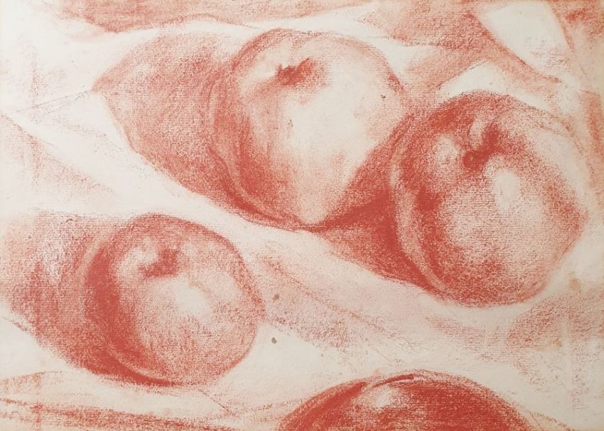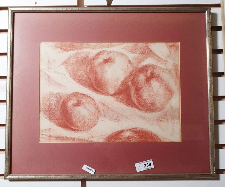 20th century school Pastel Still life, study of fruits, unsigned and another portrait study (2)