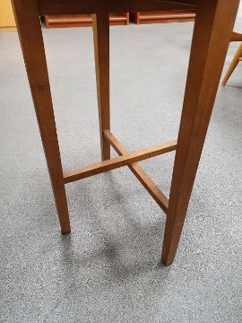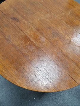 Surface scratches, scuffs and knocks. Areas of fading, discolouration and staining, Area of loss to the top of one nesting table. Areas of loss to the veneer on the side of two nesting tables. General wear and tear.