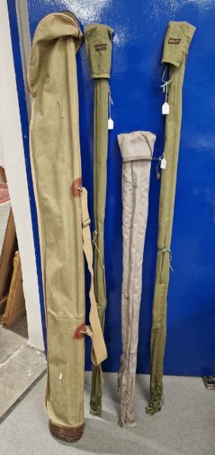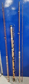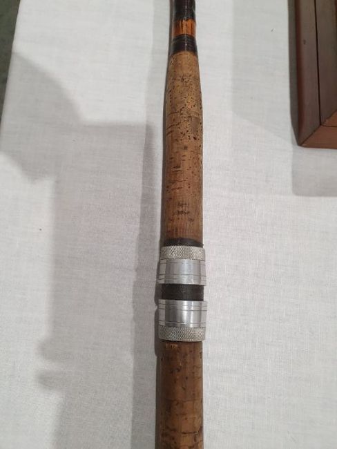 Extra photos added. No obvious signs of splits to rods. One rod with area of loss to cork handle, Rich Walker rod with some damage near one ring. General wear and tear.