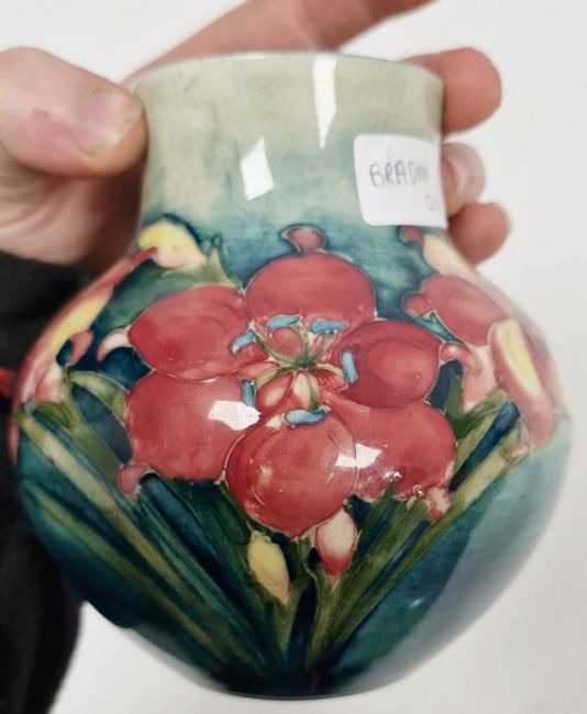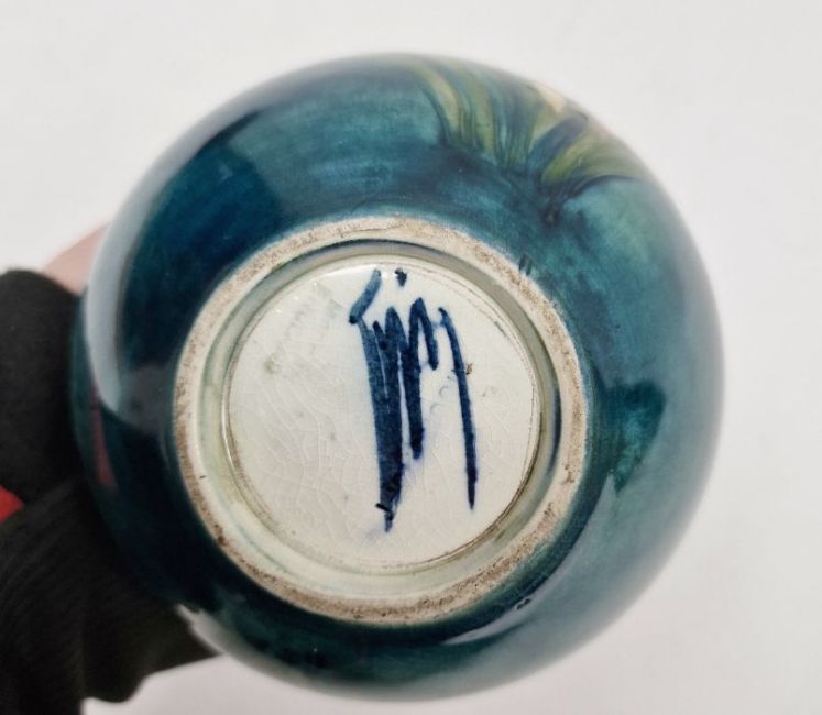 Moorcroft vase, the ovoid body with floral decoration, initialled WM in blue to base, 12cm high