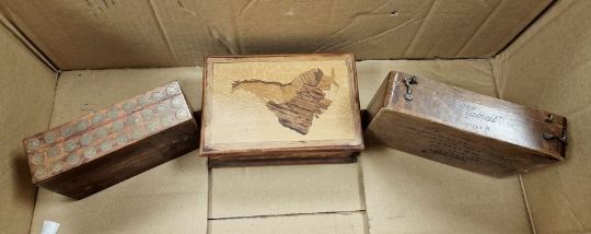Assorted South American wooden items to include bowls, boxes, etc and assorted brassware
