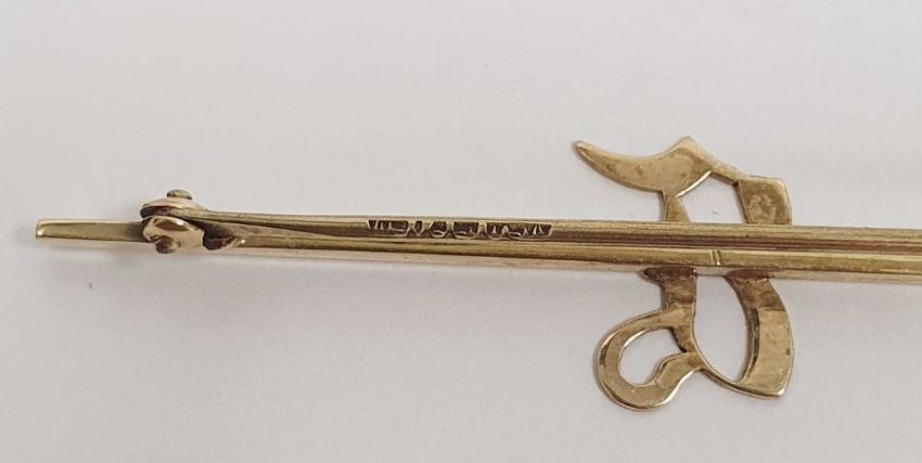 Gold-coloured pendant set with oval agate and bloodstone, a gold-coloured brooch set with blue jasperware of two figures, a 9ct gold bar brooch with mounted initial, 1g and other items