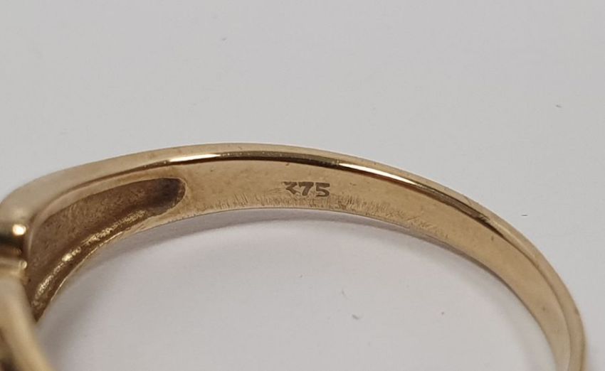 9ct gold, ruby and diamond lozenge-shaped cluster ring, 2.5g, a gold flower-shaped ring, a 9ct gold, sapphire and white stone cluster ring and a 9ct gold flower-shaped ring (4) Condition ReportLozenge shape - Size OFlower shape - size LSapphire cluster - size POther flower shape - K