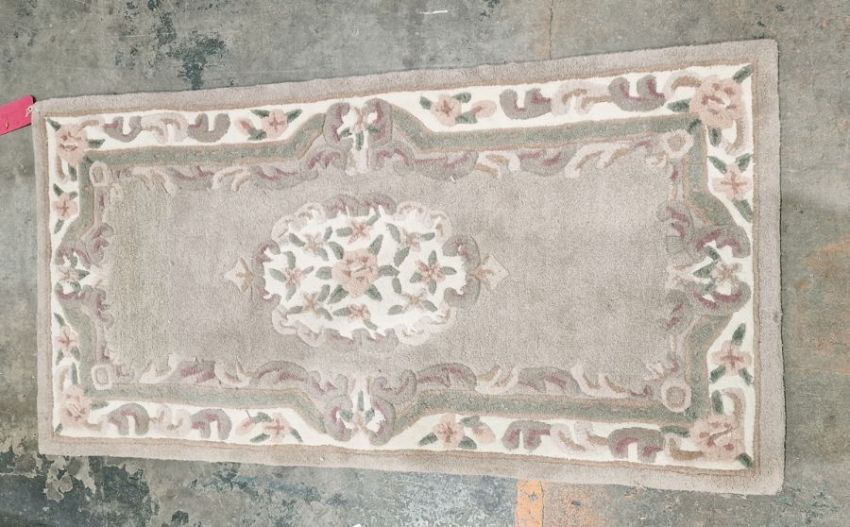 Pair of Chinese cream ground superwash rugs with central floral medallion and floral borders 148cm x 74cm
