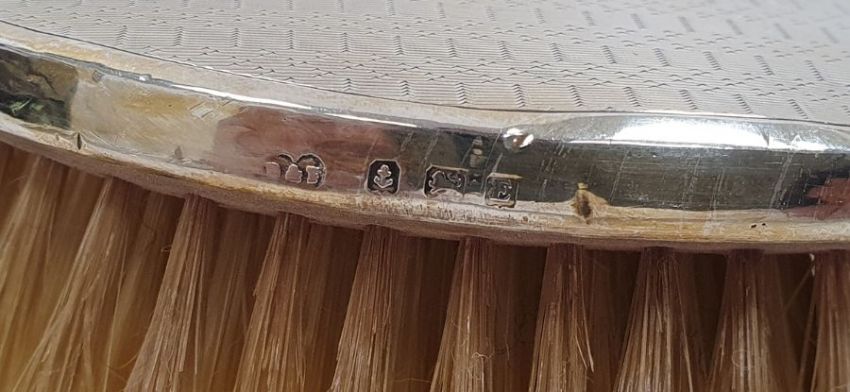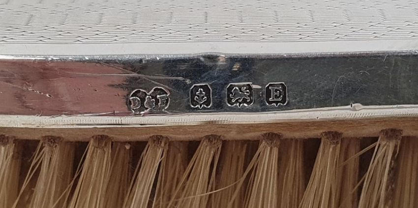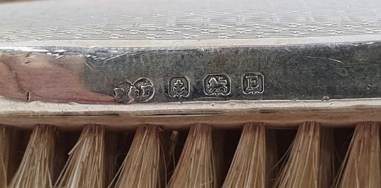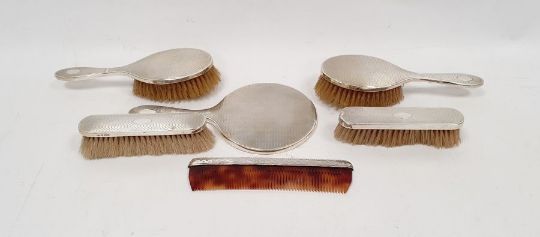 1920's five-piece silver-mounted dressing table set with engraved decoration, Birmingham 1929, maker Deakin & Francis Ltd and a similar silver-mounted and tortoiseshell comb, Birmingham 1926, makers mark worn (6)