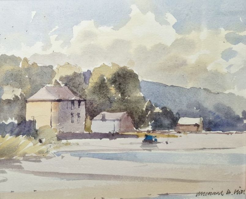 Michael Hill WatercolourHouses by river, signed lower right, 20cm x 24cm