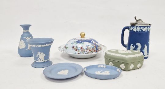 Copeland pattern 2117 muffin dish and cover, floral decorated with gilt highlights and quantity of Wedgwood jasperware to include vase, pin dishes, heart-shaped box, etc (7)